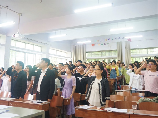 活动伊始,张艺馨组织党员缴纳党费,接着,全体起立重温入党誓词。随后,与会党员领读《党章》第六章三十七、三十八条,第七章三十九条。接着,刘恒领学“习近平对深化东西部协作和定点帮扶工作做出的重要指示精神”,他强调,要认真学习习近平提出的重要指示精神,深刻认识新发展阶段坚持和完善东西部协作和定点帮扶工作的重大意义。而后,覃昕领学“4月2日习近平在参加首都义务植树活动时的重要讲话精神”,她指出,加强生态文明建设,是贯彻新发展理念、推动经济社会高质量发展的必然要求,也是人民群众追求高质量品质生活的共识和共同呼声。接着,彭召元领学“4月25日至27日习近平在广西考察时的重要讲话精神”,他强调,要坚决贯彻党中央决策部署,坚持解放思想、深化改革、凝心聚力、担当实干。随后,张艺馨领学“4月13日湖北省脱贫攻坚总结表彰大会会议精神”,她像在场人员介绍了脱贫要求,并且指出,打赢脱贫攻坚战是光荣而艰巨的任务,我们要坚守成果。而后,与会党员周旭领学“习近平对打击治理电信网络诈骗犯罪工作作出的重要指示精神”。随后,张艺馨播放党史微课《百年回眸之党史上的青年力量----李大钊》,接着,全体党员学习中共中央印发《中国共产党普通高等学校基层组织工作条例》,并且对如何落实《条例》进行交流,与会党员积极发言。