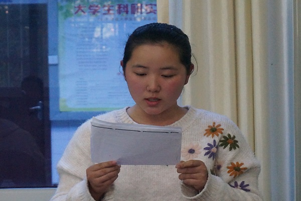 本网讯(通讯员 许智玮 林亚丽/文 冷中茗/图)11月12日,我院教职工党支部与学生党支部在院会议室联合开展以“布局开新篇 谋划新时代----全面贯彻落实党的十九届五中全会精神”为主题的十一月党日活动。我院教职工党支部及学生党支部全体成员参加此次活动。我院学生党支部书记张艺馨担任主持人。