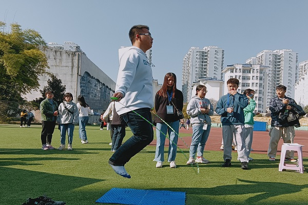 此次活动分为三个部分,个人赛“指压板跳绳”、小团体赛“快乐链接”“抛绣球”、大团体赛“解手链”“十人十一足”。在“指压板跳绳”比赛中,参赛者需要在两分钟内完成指压板跳绳并计数。在“快乐链接”中,参赛者相互配合,紧紧夹住气球,稳而不乱的小心前进,力求一遍过。在最受欢迎的项目“十人十一足”中,不少团队靠着“单数迈左脚,双数迈右脚”的经验,以最快的速度到达20米外的终点。活动场地充满着参赛者的欢声笑语。