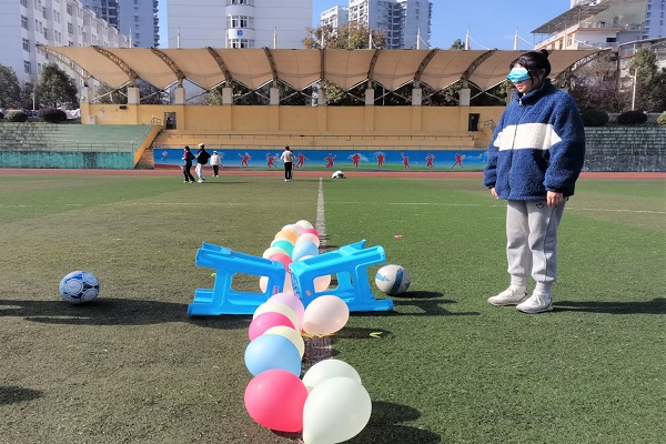 此次活动分为三个部分,大团体赛“十人夹子跑”“跳大绳”、小团体赛“心有灵犀”“盲人射门”、个人赛“夹玻珠”。其中,“盲人射门”最具有看点,五人为一个小组,一人射门,三人指挥,一人捡球。而最具挑战性的项目是“十人夹子跑”,十分考验参赛者的协调性和团队合作能力。最后,比赛在参赛者的紧密配合中结束。
