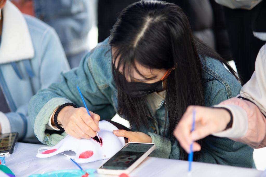 此次活动分为手工以及游戏两个环节,手工环节有“画脸谱”“跳格子”,游戏环节有“套圈圈”“蒙面拥抱”“线上乒乓球”。其中“画脸谱”项目最受欢迎,充分锻炼动手能力,同学们挑选颜料为空白脸谱上色,且完成后可自行带走留念。最考验默契的是“线上乒乓球”项目,小组内三个成员要齐心协力使乒乓球在所牵俩线上平稳运动,十分考验参赛者的协调性和团队合作能力。最后,活动在同学们的欢声笑语中圆满结束。