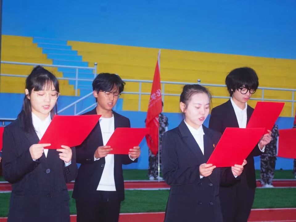 活动伊始,全体同学升国旗,出团旗,唱国歌。紧接着,主持人领唱团歌,重温入团誓词。我院团员代表余纯以“不负使命,筑梦未来”为主题进行国旗下演讲,她讲到:作为新时代青年,要坚持以中国式现代化推进中华民族伟大复兴,讲好新时代中国特色社会主义故事,厚植爱党爱国爱社会主义情感。随后,由两院学生代表带来诗歌朗诵《青春中国》,从鸦片战争起到今天的富强中国,展现了近现代中国发展的艰辛历程,朗诵者们精神饱满,句句铿锵,彰显了民大学子风采。最后,彭召元老师讲授微团课《不负盛世韶华,谱写青春华章》,他以“以志为先,以新为径,以苦为念”为引导,鼓励同学们立志民族复兴,不负时代与人民,在青春跑道上跑出风采。