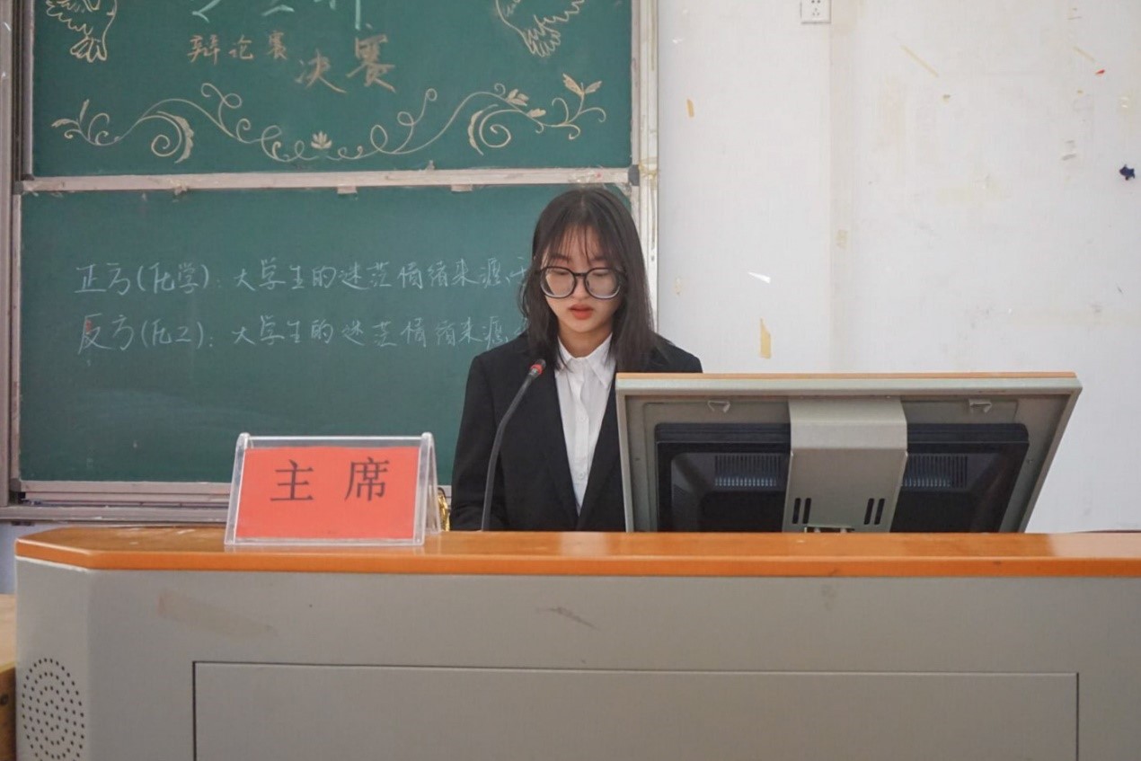 正方为化学专业代表队,反方为化学工程与工艺专业代表队,双方围绕“大学生迷茫情绪来自于自身还是社会”展开辩论。最终化学专业代表队以89.32分获得此次辩论赛冠军,正方二辩穆凡、反方二辩阳桂慧获得本次决赛优秀辩手。