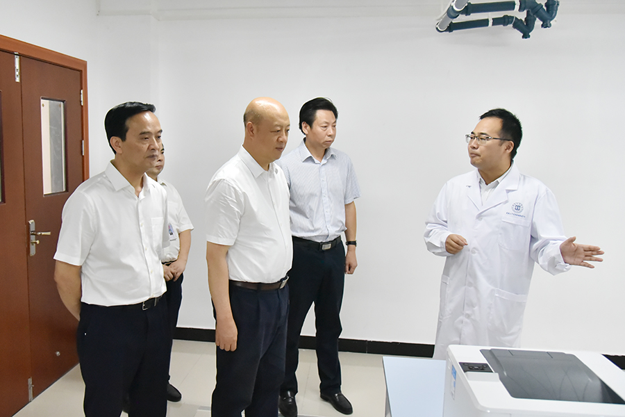 杨颖(右三)在夏锡璠(右二)陪同下考察武陵山中药材检验检测中心