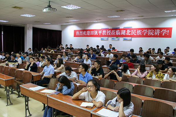 本网讯(记者 陈文静/文 通讯员 陈孝雪/图)6月3日晚,法学博士、西南民族大学法学院教授田钒平在我校徳智楼9A410教室作题为《民族自治地方经济发展法治保障的核心问题完善途径》的学术报告。法学院党总支书记、院长徐铜柱,副院长王燕及部分老师出席此次讲座。徐铜柱担任主持人,近三百名学生参加此次讲座。