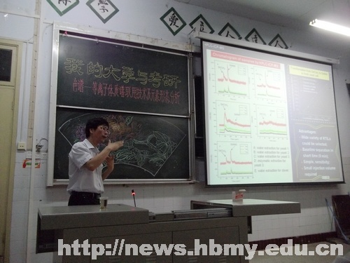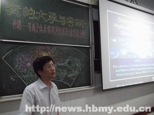 本网讯(记者 陈萌萌)5月17日,武汉大学化学与分子科学学院副院长、博士生导师胡斌教授应邀来到我校,在化学与环境工程学院2107教室举行了题为 “色谱—等离子体质谱联用技术及元素形态分析”的学术讲座。