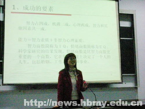 本网讯(记者邓君凤 通讯员胡琪琪)为增强学生心理素质,构建和谐校园,4月22日晚,生科院“健康身心,热爱生活”系列活动之“精彩触手可及——谈成功的心理条件”主题讲座在该院4202教室举行。财经政法学院副院长司马俊莲法学博士应邀担任主讲。文科博士为理科生传经,别样的逻辑思维,丰富的案例分析,让现场学生思维大展。