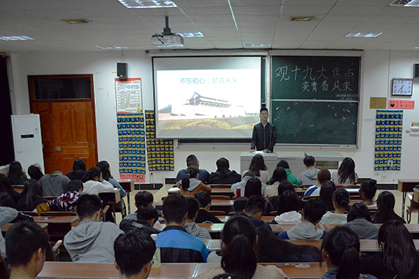 本网讯(见习记者 易天紫 羿林英/文 王琰/图)10月31日晚,由我校法学院举办的“观十九大焦点,亮青春风采”主题演讲比赛在德智楼9A410教室圆满落幕。该院学生科老师成润及团委、学生会主要干部出席大赛,并担任比赛评委。该院近两百名学生到场观赛。选手杨博涵以8.85的高分夺得桂冠。