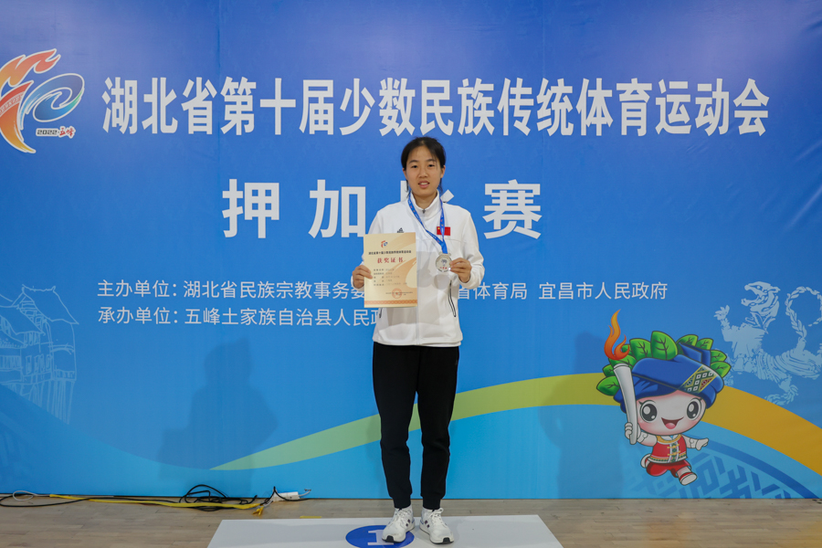 “只要尽最大努力去拼搏,好结果往往离你不远。”史倩倩摘得湖北省第十届少数民族传统体育运动会押加项目女子50公斤银牌。