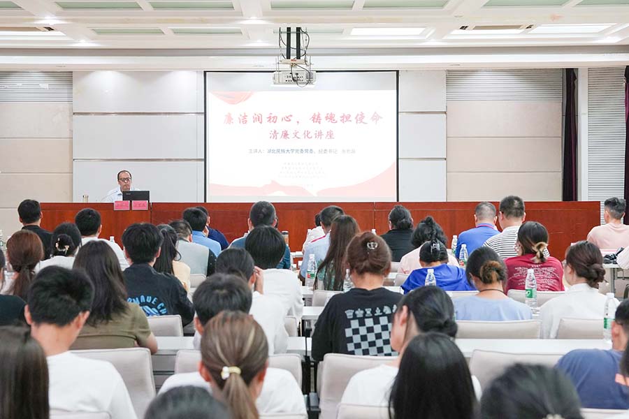 5月30日,学校党委常委、纪委书记、监察专员张宏磊在德智楼多功能会议厅以《筑牢信仰之基》为题,为广大青年学生讲授了一次生动的清廉文化党课,正式拉开学校“青春民大·清风校园”清廉文化系列活动序幕。