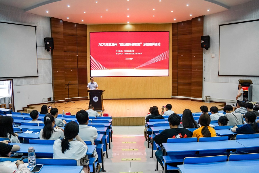 活动分两个阶段进行,在第一阶段“高校共青团就业指导进校园”活动中,袁辉老师从自身志愿服务支教经历出发,分享他在成长道路上的困惑、挫折与成长,鼓励同学们投身基层,勇担使命,在青春的赛道上奋力奔跑。赵寄凯书记则以自身“入伍、返校、到村”三个节点为主线,引导同学们正确看待工作,教导大家如何实现就业与事业的双向奔赴。