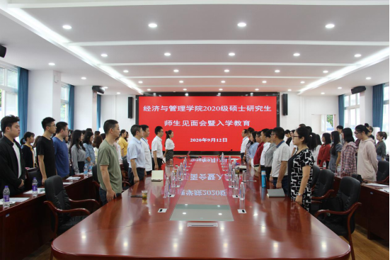 本网讯(记者 杨颖 丁旭/文 林惠珠 刘玉琳/图 )2020年9月12日,我院在经管楼会议室开展2020级硕士研究生师生见面会暨入学教育。365电子娱乐官方网站教务处处长、教授谭世明,新材料与机电工程学院党总支书记、执行院长陈世强,信息工程学院副教授贺刚,我院党委书记、教授张新平,副院长朱廷辉,会计系主任卢秋声,以及硕士研究生导师应邀出席,2020级全体研究生60余人参加会议,学生建设科科长冉瑞恩担任主持。