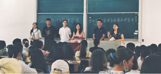 2020年9月3日,经济与管理学院2020级专升本新生学生管理及疫情防控宣讲会在学院附301教室举行,学院党委副书记张姣蓉、教学科科长萧静、学生科科长曹骞以及学生科全体辅导员参加了此次宣讲会。