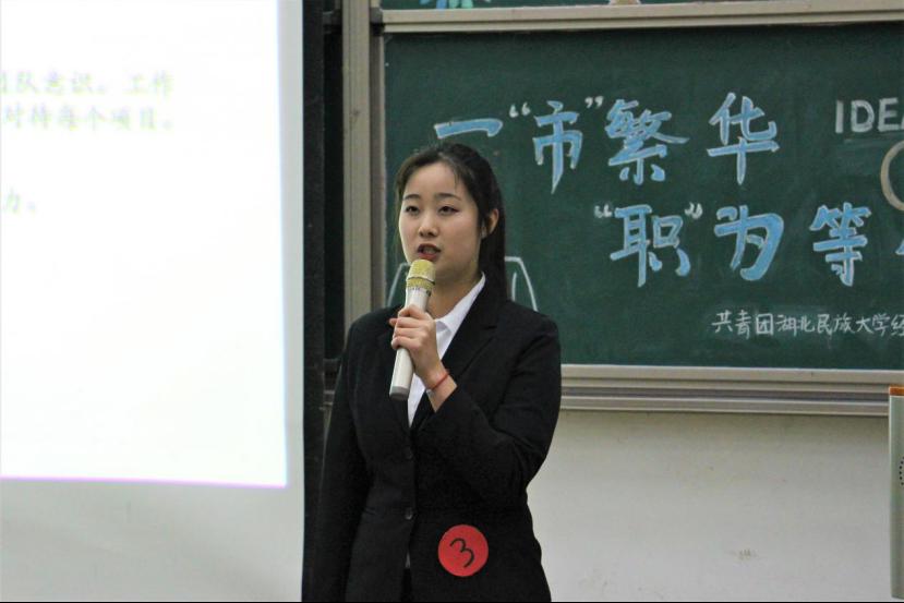 比赛共分为职场亮剑和职场风云两个环节。在职场亮剑环节中,3号选手叶祖璇通过VCR和PPT展示,表明她的求职意向是财务管理,并从综合评价、职业认知、职业规划三个方面进行介绍。在面对评委提出“公司的市场前景、升职和加薪更看重哪一方面”的问题时,她答到,更看重企业的市场前景,一个市场前景大的公司更有利于提升自身能力,从而获得升职加薪的机会。在职场风云环节中,为考验选手的临场应变能力,采用随机抽题解答方式进行。在回答“作为一名应届毕业生,你认为自己与职场老手和高学历毕业生相比自己的优势在哪里”的问题时,4号选手侯默表示,应届毕业生的可塑性更强,更能适应社会的发展,对薪酬的要求相对较低,同时还有追求卓越、甘于奉献的精神。