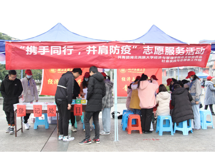 本网讯(见习记者 许林珍 李瑶/文 记者 苏曈 刘玉琳/图)为增强大学生在疫情防控时期的防疫意识,2020年11月29日,经济与管理学院举办以“携手同行 并肩防疫”为主题的志愿服务活动。该活动在大学生广场及图书馆楼下两处举办,共有40余名志愿者参与。