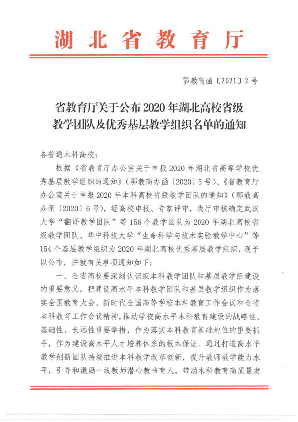 根据湖北省教育厅发布的《关于公布2020年湖北高校省级教学团队及优秀基层教学组织名单的通知》,365电子娱乐官方网站经济与管理学院旅游管理专业应用型人才培养教学团队获批为湖北高校省级教学团队。在这次省级教学团队及优秀基层教学组织名单中,仅我校和武汉商学院旅游管理系获此殊荣。