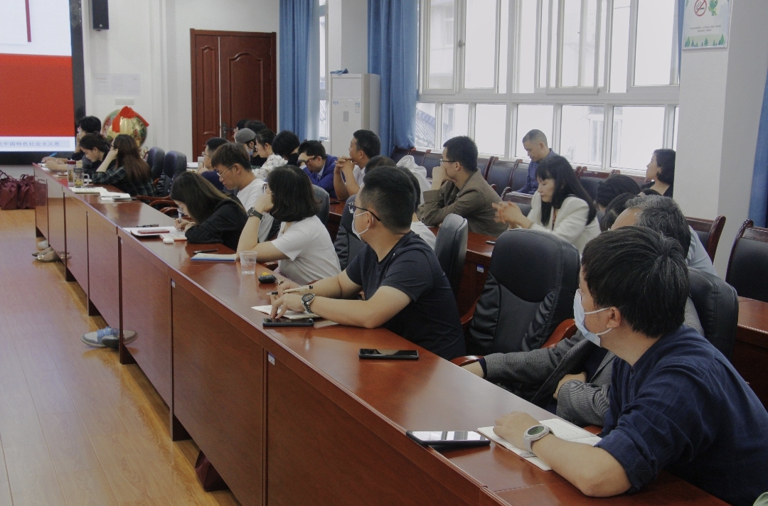 本网讯(记者 杨兆佳/文 张玉婷/图)2023年5月25日,经济与管理学院在经管楼附303会议室开展学习贯彻习近平新时代中国特色社会主义思想主题教育宣讲,马克思主义学院鲁帅博士应邀担任本次主题教育宣讲会主讲人。经济与管理学院党委书记陈霞、院长张新平、副院长谭志喜及全体教职工参与本次宣讲会。