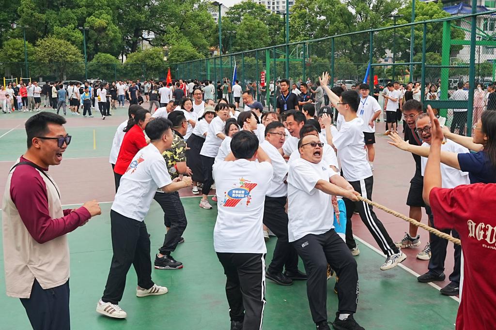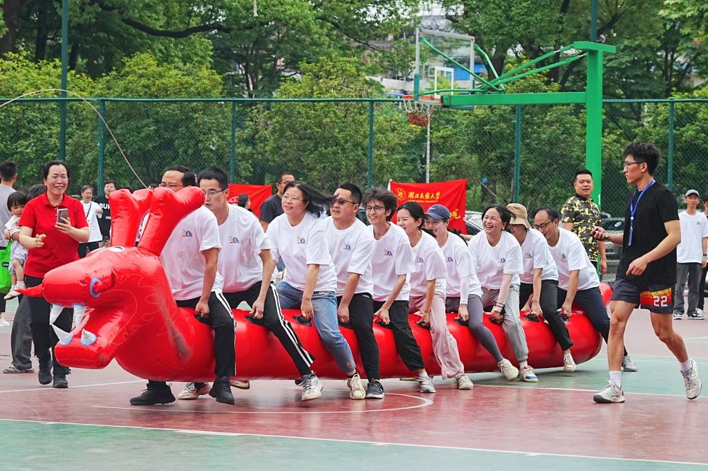 运动会共有陆地龙舟、拔河、跳绳接龙、动感颠球四个竞赛项目。全体教职工身着统一的运动装,以饱满的热情和精湛的协作,展现团队凝聚力与运动魅力,为校园增添一道亮丽风景线。