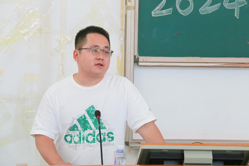 优秀青年教师向浩讲话。他希望新生尽快树立明确目标,合理制定学习计划和职业规划,培养自主学习、独立思考、团队协作能力,为未来职业生涯打下坚实基础。同时鼓励新生积极参加社会实践,以良好心态应对前进道路上的艰难险阻。