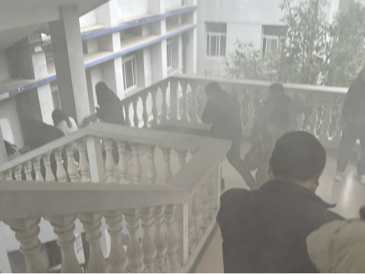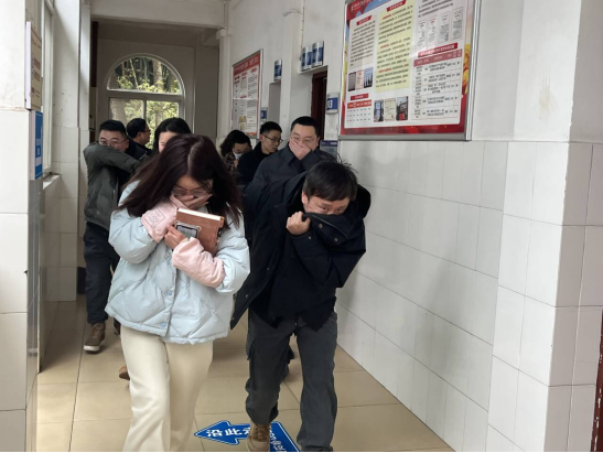 演习开始,经管学院办公楼3楼模拟突发火灾。学院立即启动应急预案,迅速组织师生疏散。在疏散引导人员的指挥下,师生们用湿毛巾捂住口鼻,弯腰低姿,迅速、有序地从办公楼和教学楼撤离到安全地带,充分展现了师生们良好的应急反应能力和组织纪律性。