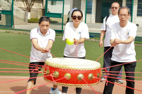 比赛现场气氛热烈,经济与管理学院教职工展现出高度的活力与团队协作精神。在跳绳接龙项目中,教职工身姿矫健,快速穿梭跳跃,动作流畅自然,展现出了良好的节奏感和协调能力,用默契的配合不断刷新着成绩;在陆地龙舟项目中,教职工步伐一致,以沉稳有力的脚步和坚定必胜的决心向着终点奋力迈进;在动感颠球项目中,教职工们围圈而立,双手紧握鼓绳,在不断的尝试与调整中,让球保持跳动,彰显出高度的团队协作意识。