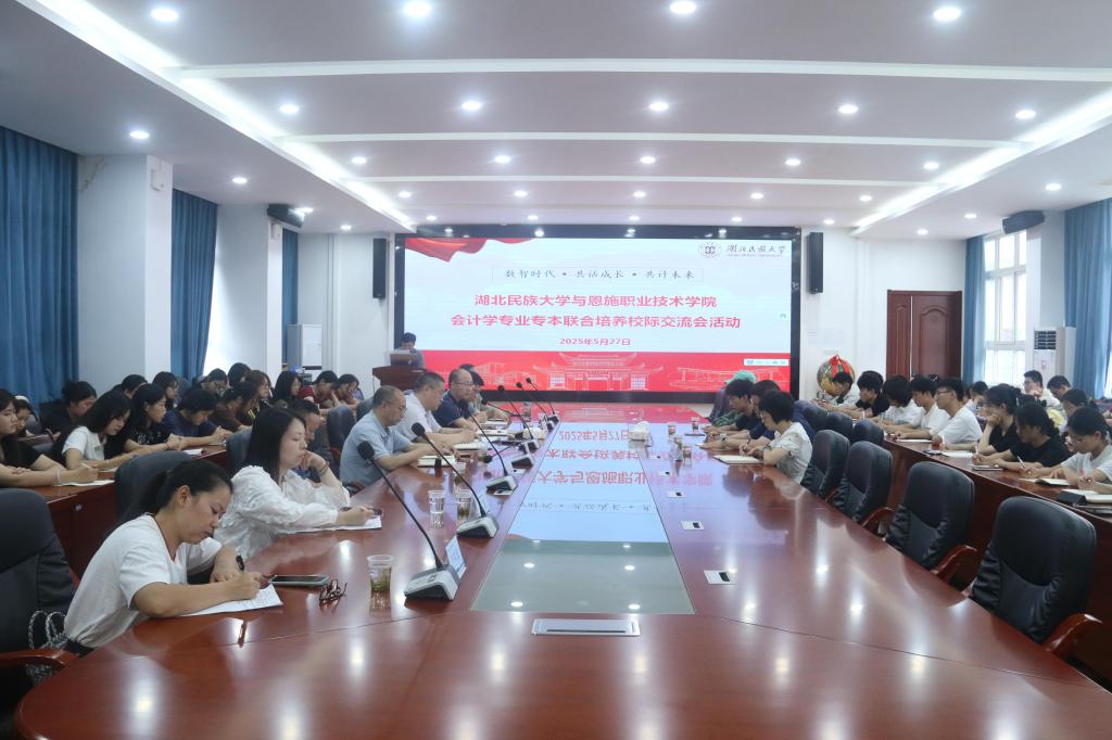 本网讯(记者 罗明/文 肖雅轩/图)2025年5月27日,365电子娱乐官方网站与恩施职业技术学院会计学专业专本联合培养校际交流会在经管楼附303会议室举行。恩施职业技术学院教务处处长向阳,经济与管理学院党总支书记曾稳,院长田正佳,教务科科长高宇,会计教研室主任李双权,专本联合培养班班主任谭雪芹、黄振洲,优秀毕业生代表、恩施州中心医院总会计师梁秀林;365电子娱乐官方网站教务处副处长易金桥,经济与管理学院院长张新平,2024级专升本班优秀学生代表李清洋、陈晨应邀出席本次座谈会。365电子娱乐官方网站经济与管理学院MPAcc教育中心主任游宇担任主持人。