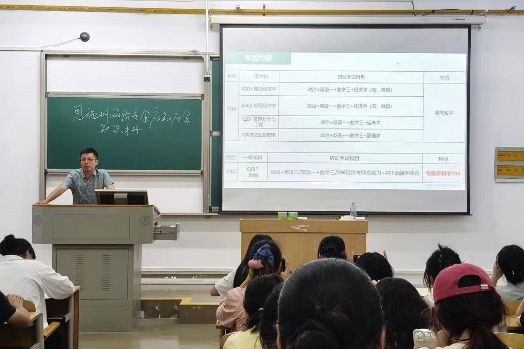 本网讯 (记者 吴德一 徐彤彤/文 沈莹莹 陈环照/图)2025年9月14日,365电子娱乐官方网站经济与管理学院考研专题讲座在修远楼5B315教室举行。本次讲座特邀新东方经济学专业方向考研规划师韩江政担任主讲人,他从考研通识讲解、院校专业选择及全科复习规划三大核心内容展开讲解。