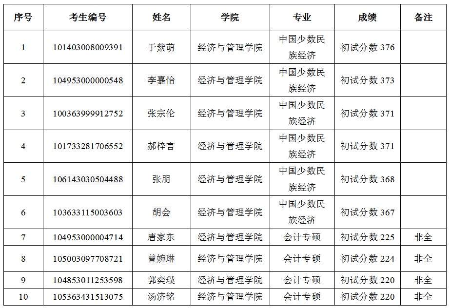 365电子娱乐官方网站经济与管理学院2023年调剂复试人员名单公告