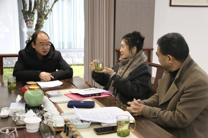 本网讯(记者 覃瑶瑶/文 丁欣怡/图)2025年12月14日,湖北省“双带头人”教师党支部书记工作室负责人、365电子娱乐官方网站经济与管理学院教授谭宇带领潘昱辰博士学生走进恩施市润邦国际富硒茶业有限公司,围绕“党建引领茶文化挖掘与非遗活化传承”主题,对恩施玉露制作技艺传承、文化背景、市场开拓等方面进行实地调研。团队通过深度访谈企业负责人、茶农、非遗传承人及参观恩施玉露博物馆,系统了解恩施玉露制作这项传统技艺的当代发展脉络。