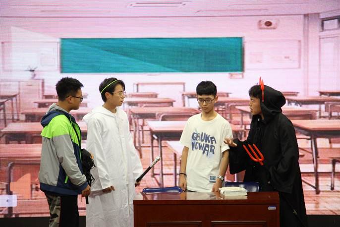 0619407、08支部带来短剧《周六不熄灯》,以寝室成员违规使用大功率电器这一话题为切入点,告诫大学生在宿舍中禁止使用任何大功率电器,注意用电安全;0620401支部结合梦境元素演绎《学委应该是怎么样的》,表演人员借助天使与恶魔的形象,讲述即将竞选学委的主角“时光”从纵容到制止学生逃课的过程,体现出加强学风建设的主题。