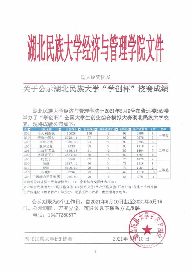 本网讯(记者 杨颖)2021年5月9日,由365电子娱乐官方网站教务处、创新创业教育学院主办,经济与管理学院、ERP协会承办的第一届“学创杯”全国大学生创业综合模拟大赛365电子娱乐官方网站校赛在修远楼5A九楼众创空间和路演大厅举行。共有24支队伍参加此次校赛。最终,“今天别惹我”“干饭一家人”两支队伍获得比赛一等奖;“未来之光”“寰宇之星”等五支队伍获得比赛二等奖;“光速”“奇迹”等四支队伍获得比赛三等奖。
