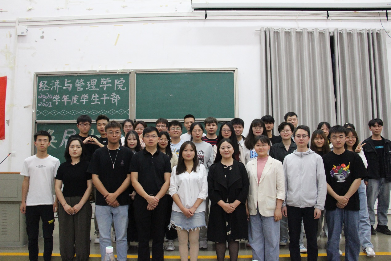 本网讯(记者 黄春兰 毛林 杨彩芬/文 熊海婷 李瑶/图)2021年5月20日,经济与管理学院第十一届学生干部换届大会在修远楼5A207教室举行。经济与管理学院党委副书记张姣蓉,学生科科长曹骞,学生科辅导员黄珊珊、覃杰、向绍阳应邀出席。经济与管理学院团总支书记张典担任主持。