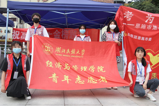 本网讯(记者 赵依婷 金思羽/文 李兰 熊海婷 尹依伊/图)2021年6月7日至9日,经济与管理学院25名青年志愿者前往恩施市一中高考候场区开展以“爱心助考 为梦护航”为主题的志愿服务活动。
