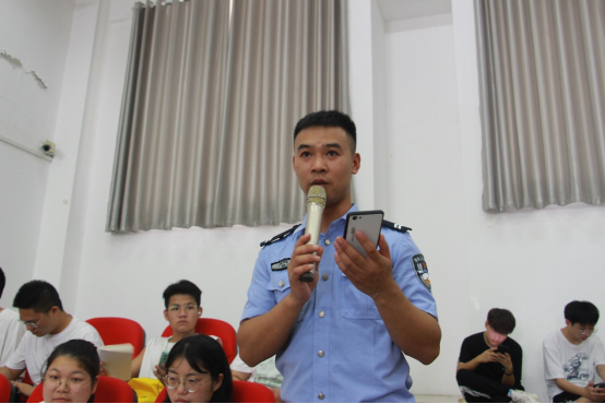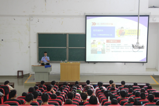 罗浩围绕网络贷款诈骗、刷单诱利诈骗、冒充电商物流客服诈骗、注销校园贷诈骗、虚假购物诈骗、网络游戏虚假交易诈骗六个方面宣传反诈骗知识。在网络贷款诈骗方面,他指出易受诈骗群体为无业、个体等有贷款需求的人群。同时,他通过案例分析、现场互动和口号宣传等方式讲解网络诈骗常见手段;在刷单诱利诈骗方面,他强调,诈骗团伙通常以“高薪”“轻松”为口号发布招聘广告,吸引学生和待业人群等目标群体,并提醒学生谨防此类诈骗;在注销校园贷诈骗方面,他表示,不可将银行卡、手机号、身份证等个人身份信息转借转租给他人,并教导学生遇到不明信息要采取不理、不信、不转账等措施。最后,他介绍并指导学生下载国家反诈中心APP,帮助学生预防网络诈骗。
