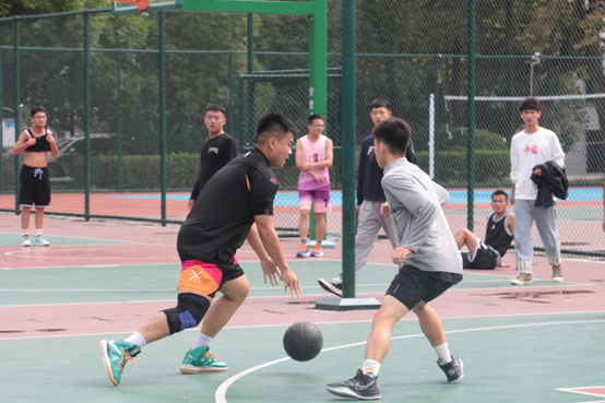 本网讯(记者 李兰 熊海婷 李瑶/图)2021年10月8日、9日、13日,经济与管理学院党员师生篮球联谊赛在团结广场举行。经济与管理学院党委副书记、院长王涛,特邀嘉宾学工处副处长徐杰,学科建设科科长冉瑞恩,学生科科长曹骞,刘继耀老师,高华峰博士,谭乐平博士,张典老师等人组成党员教师队对战研究生队和大一新生队。