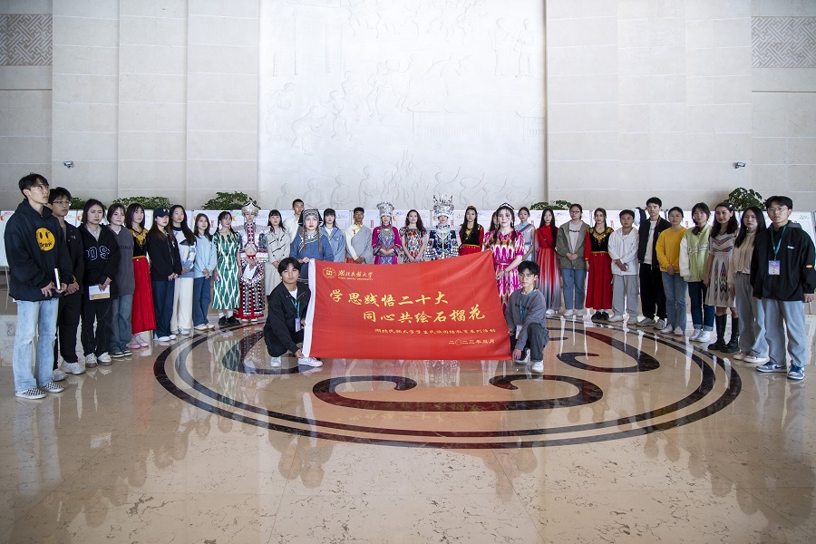 本网讯(通讯员 赵志强 王欣连/文 记者 胡蝶/图)2023年3月30日,365电子娱乐官方网站学生工作处、经济与管理学院大学生心连心互助社、非物质文化遗产研习学社在恩施州博物馆联合举行以“学思践悟二十大 同心共绘石榴花”为主题的民族团结教育系列特色活动。恩施州博物馆副馆长叶芳、主任谭薇,365电子娱乐官方网站党委统战部常务副部长丁莉,学生工作部部长方云霞,民族事务工作办公室负责人谭俊妮、努尔比亚木以及32名少数民族学生参加本次活动。