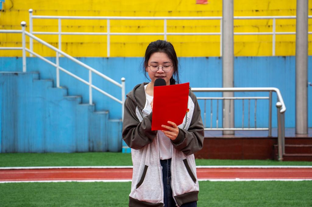 学生代表黄彬发言。她从五四精神出发,呼吁学生响应时代号召,探索科学、心系国家,立志做有理想、敢担当、肯奋斗的新时代好青年。