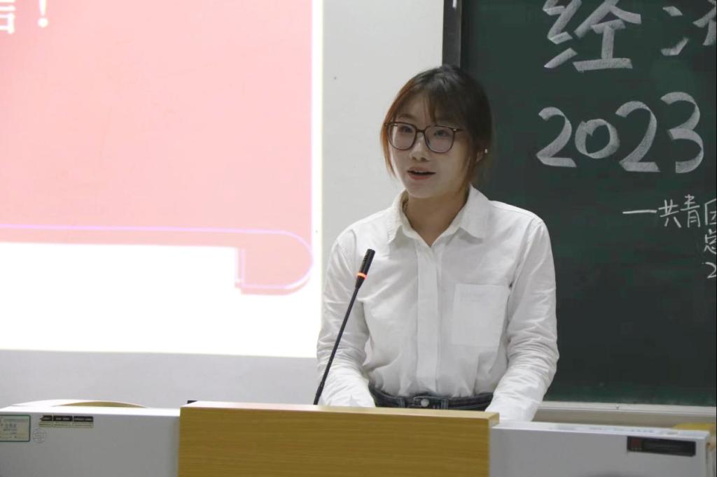 新生代表李昕恩发言。她讲到,新生应结合自身实际情况制定相应学习计划,努力学习,积极参加活动,丰富自身阅历,度过一个充实且有意义的大学生活。