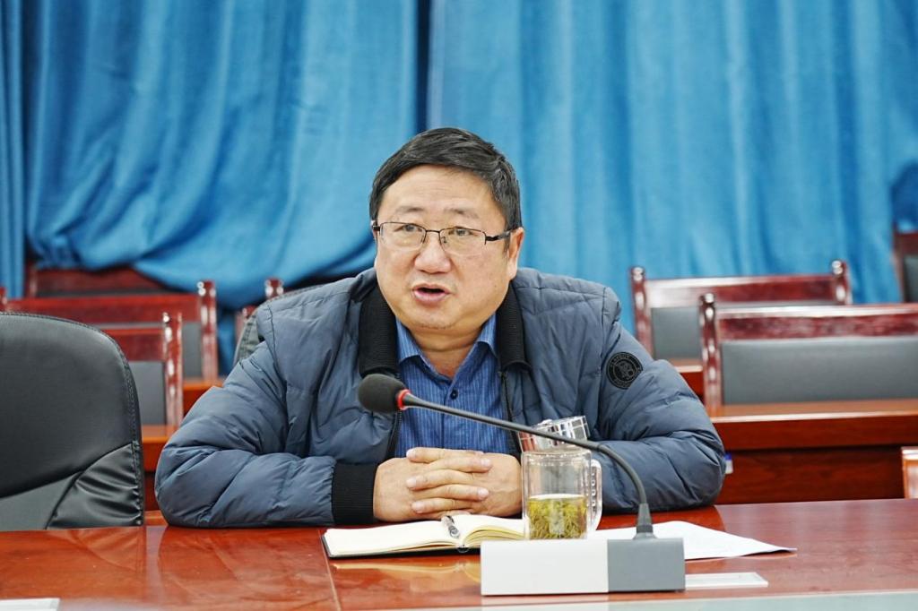 张新平讲话。他强调教师应站稳讲台,要认真对待专业课程的教学工作,努力提高教学质量。他表示应为学科制定不同阶段的目标,加大信息化、数字化建设力度。