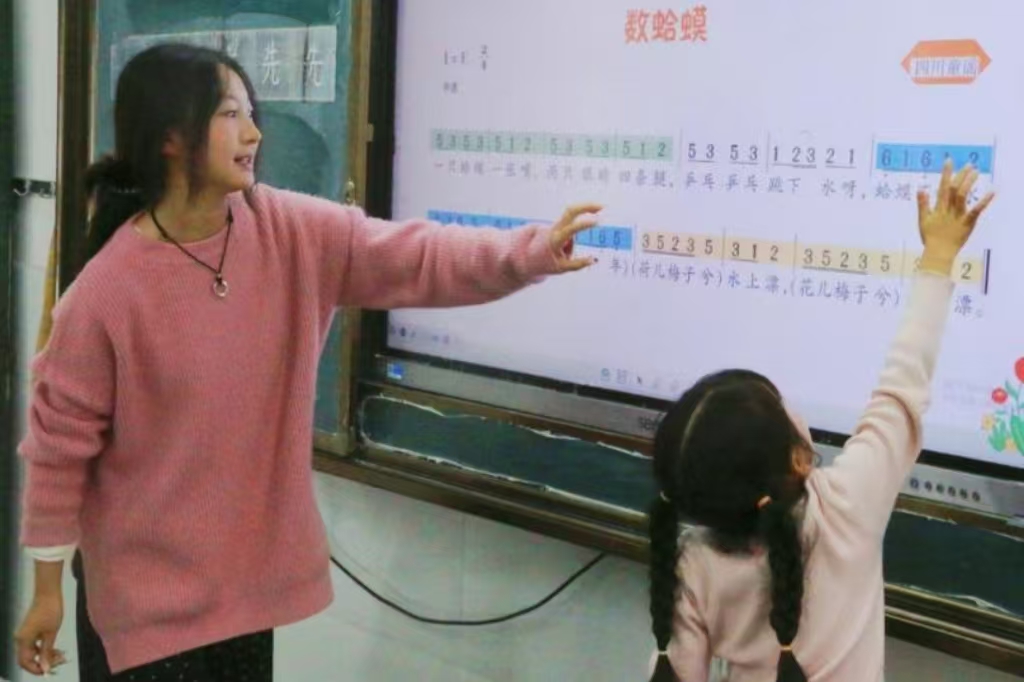 在活动中,志愿者们在教学方法上勇于创新,通过制作优质课件,设置有趣游戏带动课堂氛围。同时,积极策划各类特色活动,如心理健康教育、趣味英语、美食文化体验以及趣味音乐等活动来丰富孩子们的学习生活。其中,有一位来自新疆的志愿者,她通过对新疆特色文化的介绍,让小朋友们对新疆风情有了全新的认知体验,为安乐井小学的孩子们打开了更为广阔的视野。此外,志愿者还通过一对一指导方式帮助孩子们解决学习上的难题,激发他们的学习兴趣。
