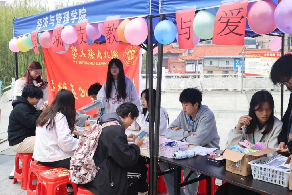 本网讯(记者 陈琪睿 见习记者 苏燕康/文 记者 布威/图)为动员更多志愿者用切实行动汇聚公益力量,传递关爱和希望之光。2024年11月16日至17日,经济与管理学院大学生心连心互助社以“云端益教 与爱相约”为主题的支教特色课程内容征集与线上支教老师招募活动在大学生广场举行。