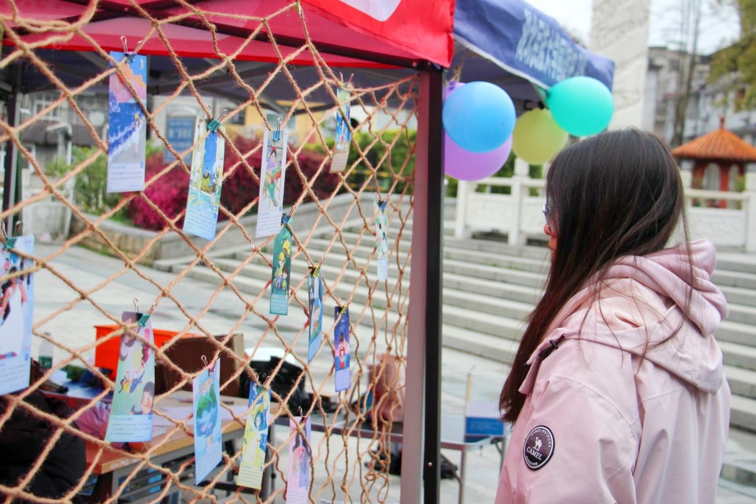 本网讯(见习记者 吴德一/文 记者 肖亚男 布威/图)为号召志愿者以书信来往的方式为乡村儿童搭建心灵交流平台,汇聚公益力量,传递关爱与陪伴,2025年3月29日,经济与管理学院大学生心连心互助社联合“一站式”学生社区-春雨社区开展的“星光信箱 童心对话”蓝信封公益活动在大学生广场举行。