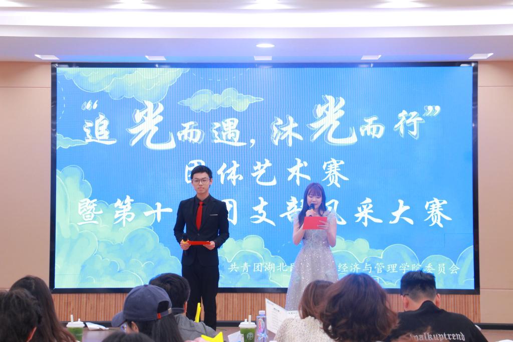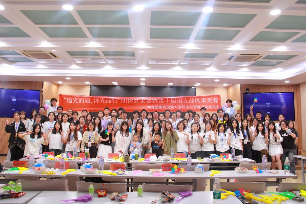 本网讯(见习记者 郭佳/文 见习记者 沈莹莹 记者 郑诗彤 肖雅轩/图)2025年4月20日,经济与管理学院联合“一站式”学生社区-春雨社区举办的以“追光而遇 沐光而行”为主题的团体艺术赛暨第十届团支部风采大赛在德智楼A栋远程教学观摩室举行。学生科科长覃杰,MPACC教育中心主任游宇,会计学系副主任刘洁玫,经济学系副主任冉炜,教师陈雪娇、阳碧玉,学生科辅导员覃雨、唐桢坤、杨睿、亚克甫应邀出席本次大赛。最终,0624404支部以94.5分夺得桂冠。