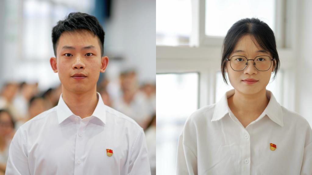 学院退役大学生朱傲与和学生党员牟希 黄俊毅/摄