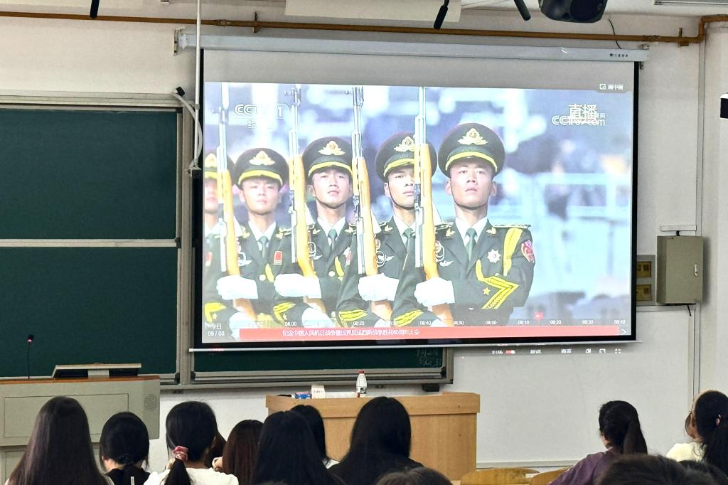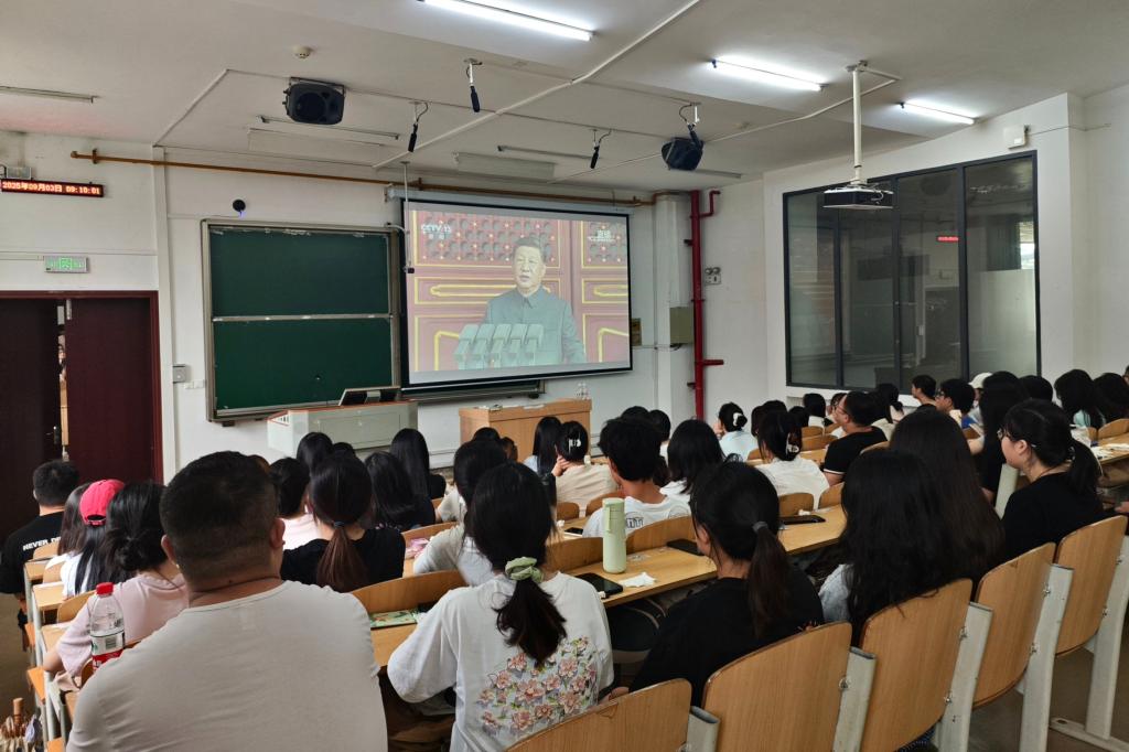 经济与管理学院师生集中观看纪念中国人民抗日战争暨世界反法西斯战争胜利80周年大会