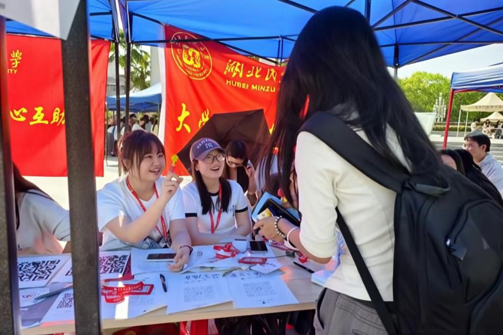 本网讯(通讯员 康丽 杨丹妮/文 王兴艳 蒋明珠/图)为号召青年学生用爱心与责任为乡村教育事业注入青春力量,2026年4月18日,经济与管理学院大学生心连心互助社志愿者招募活动在大学生广场举行。