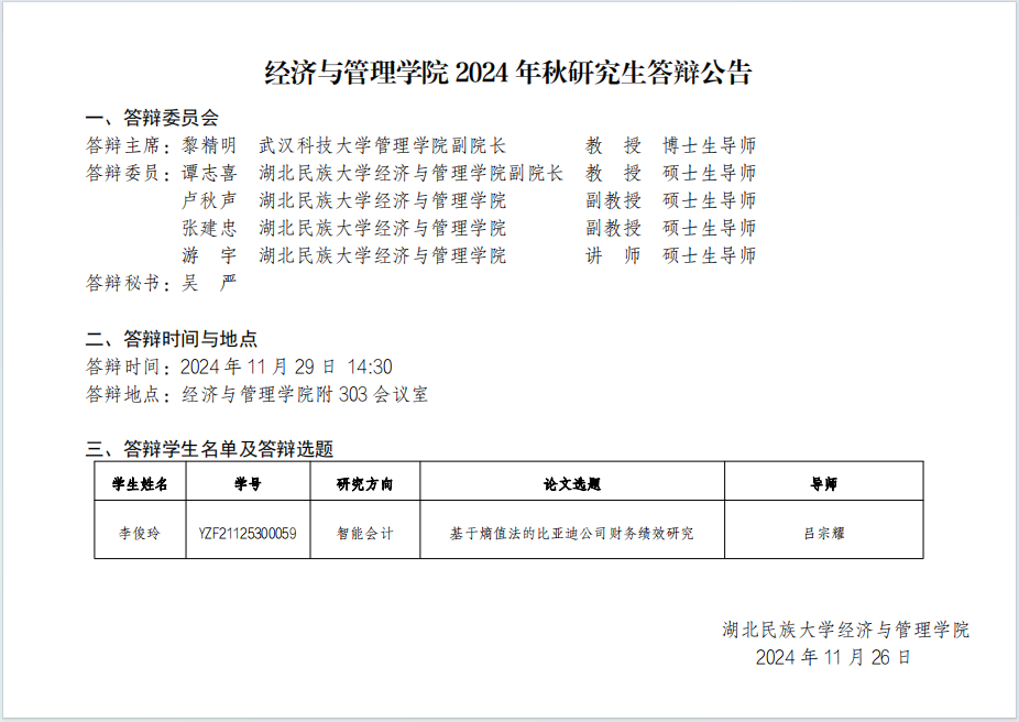 : 经济与管理学院2025年春中国少数民族经济硕士研究生学位论文答辩公告