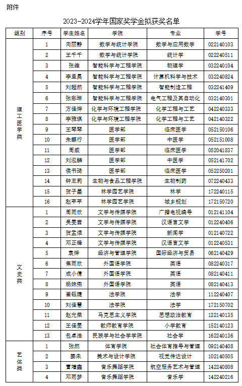 经济与管理学院学子获得2023-2024学年本科生国家奖学金