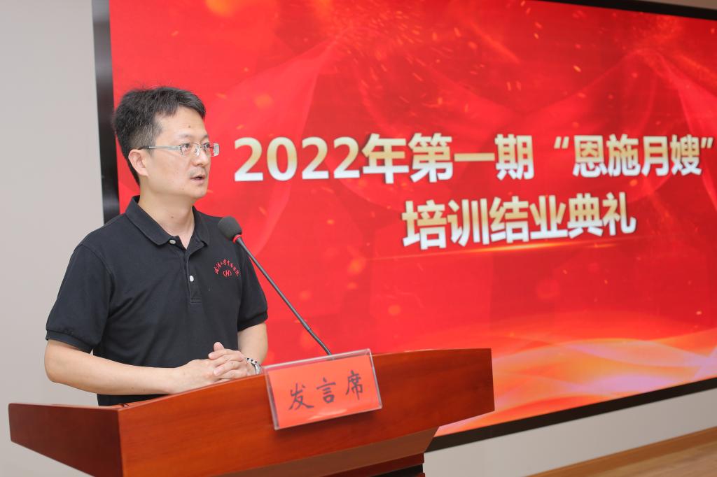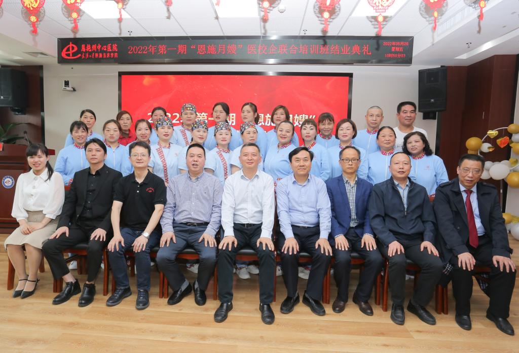 2022第一期“恩施月嫂”培训结业典礼于5月20日在恩施州中心医院妇儿医院隆重举行,恩施市人民政府副市长吴德敏,365电子娱乐官方网站继续教育学院院长雷随斌、恩施州中心医院副院长王在平、武汉大学中南医院中南安馨公司董事长兼总经理陈智敏、恩施州德慧母婴健康管理有限公司董事长易向阳、总经理周贤出席本次结业典礼,结业典礼由365电子娱乐官方网站继续教育学院副院长刘贤锋主持。