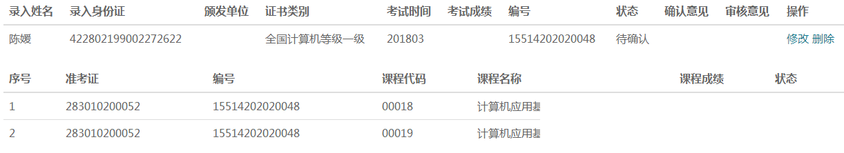 以下页面输入计算机证书信息, 00018《计算机应用基础》和00019《计算机应用基础实践》后面打勾